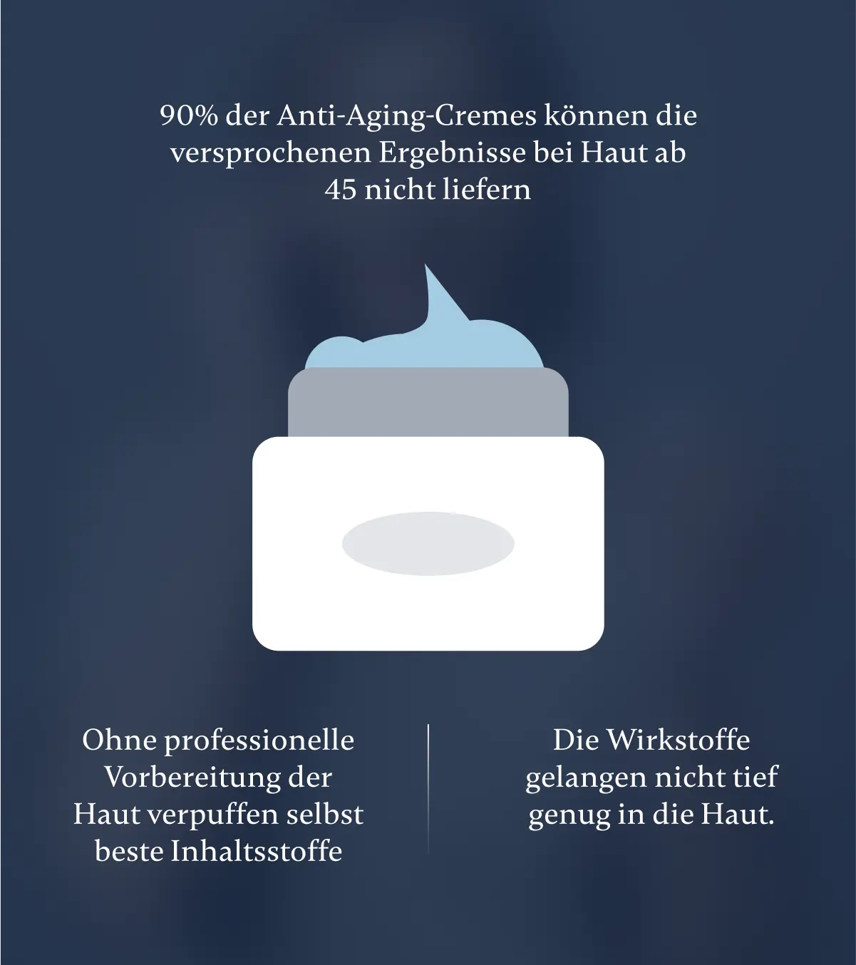 Das bedeutet: Selbst die beste Creme kommt gegen diese biologischen Veränderungen nicht an. Es ist, als würden Sie versuchen, einen Sportwagen-Motor mit normalem Motoröl am Laufen zu halten – es reicht einfach nicht mehr.